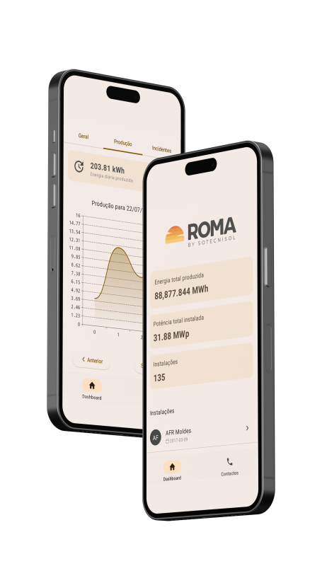 O R.O.M.A. é uma plataforma desenvolvida pelo Grupo Sotecnisol, que oferece aos clientes acesso 24/7 à informação operacional das suas centrais fotovoltaicas.